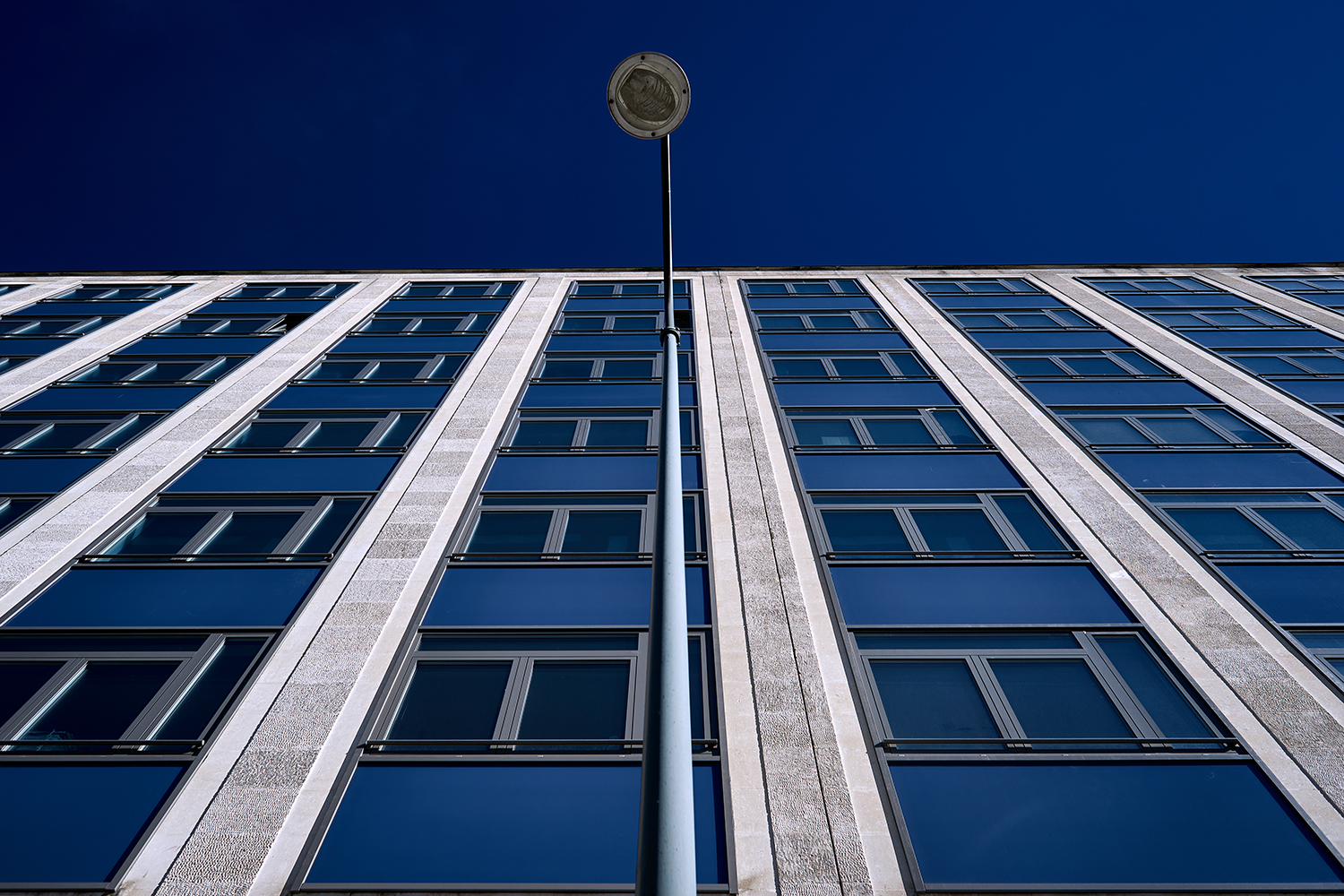 Edilizia e lampioni, difficile trovare le simmetrie. Un blu bello carico, buon pdr.