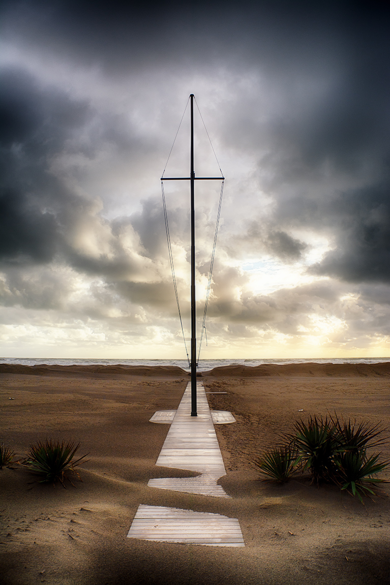 Sembra l'albero di una barca a vela ed invece in basso troviamo la spiaggia . La post è importante ma devo ammettere che la resa finale mi piace molto