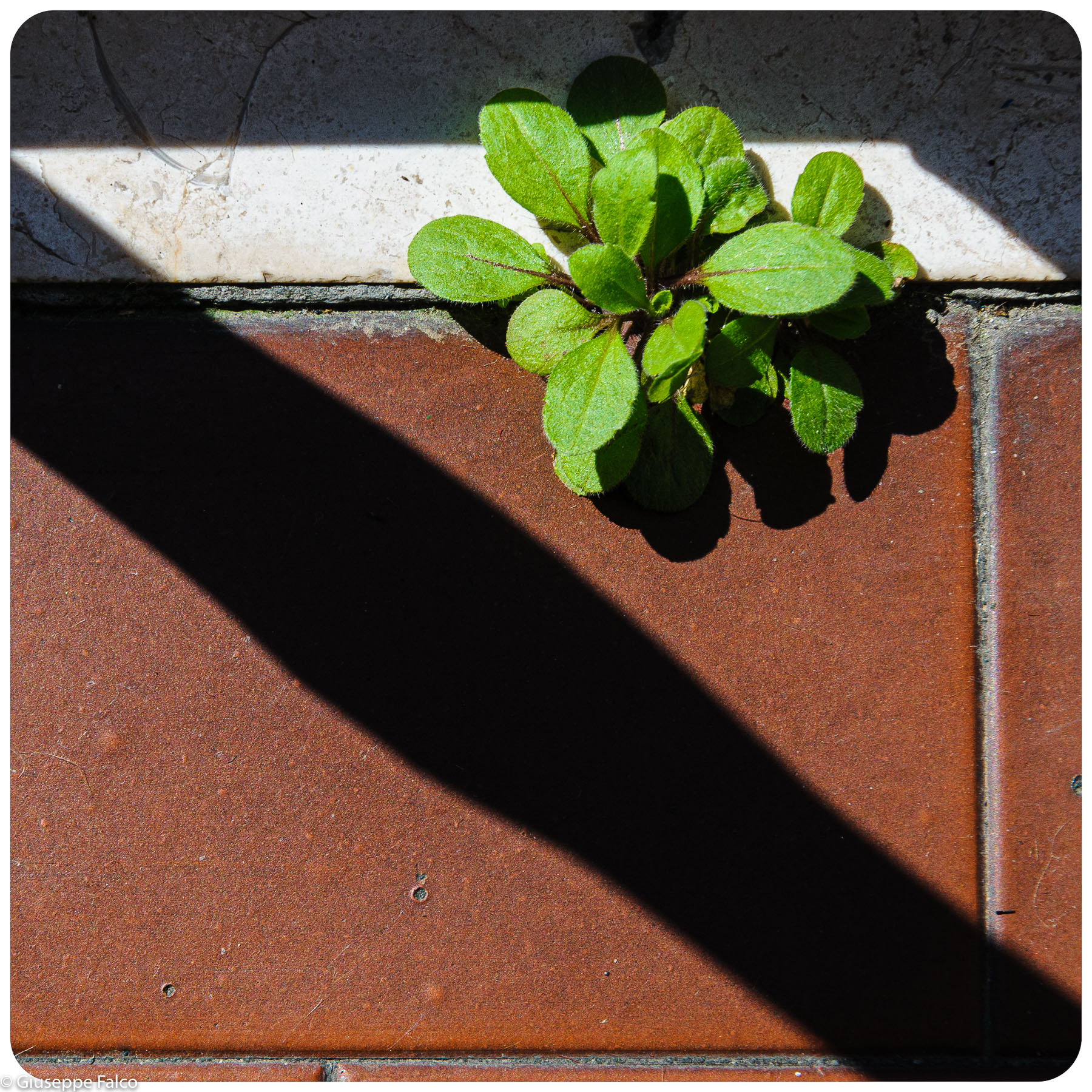 Quando si ha occhio fotografico anche uno sguardo verso il basso può far scoprire immagini che passerebbero inosservate ai più.Luce,ombra,colori,un ciuffo di erbetta miracolosamente cresciuto tra le mattonelle ed ecco che la composizione prende vita con un ottimo taglio,una splendida diagonale ed il bellissimo verde in un punto forte.Bravissimo Giuseppe! _________________ Sergio Demitri https://www.flickr.com/photos/124946035@N02/ |