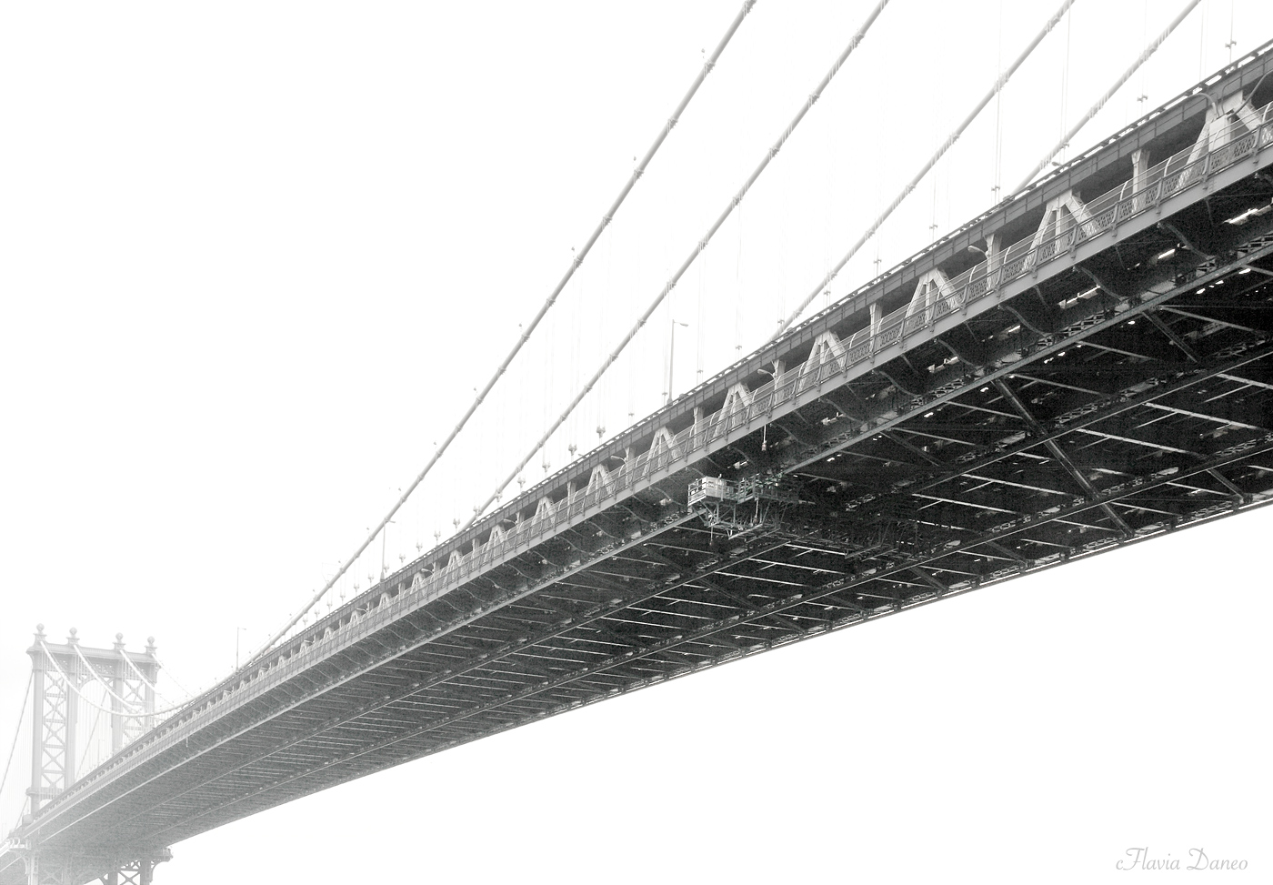 Molto ben composta, direi essenziale, con la nebbia che sfuma la struttura man mano che si allontana e nel nulla totale intorno. Ben eseguita, brava.