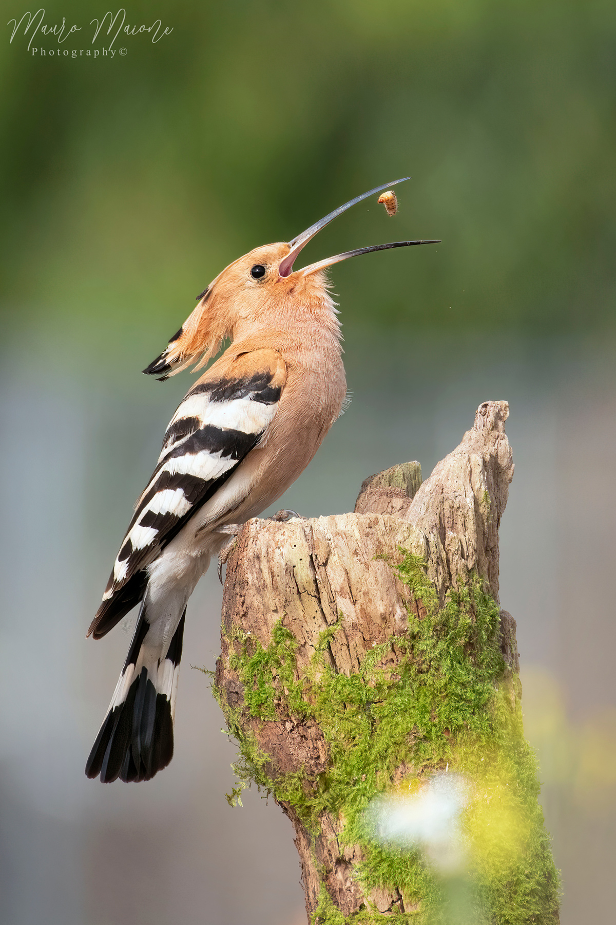 Gia hai beccato un upupa che io credo di aver visto solo un paio di volte in vita mia, ma poi, oltre al dettaglio invidiabile l'hai beccata mentre inghiotte al volo il bruco.... Fantastica