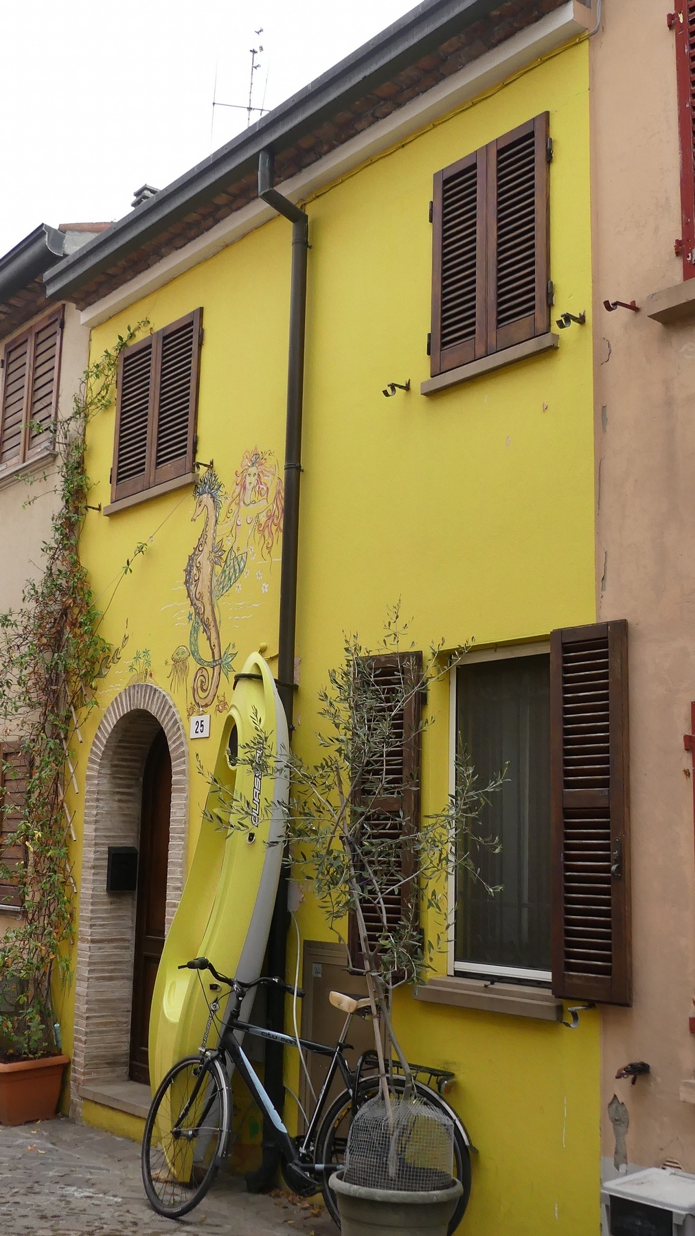 Non ricordo con precisione, perché in quella settimana a Rimini e dintorni ho fatto oltre 700 foto e girato 32GB di video, ma credo che non mi fosse possibile mettermi a una distanza adeguata per prendere tutta la parete con lo zoom della FZ300. Ho dovuto fare molte foto in prospettiva per la strettezza delle strade.