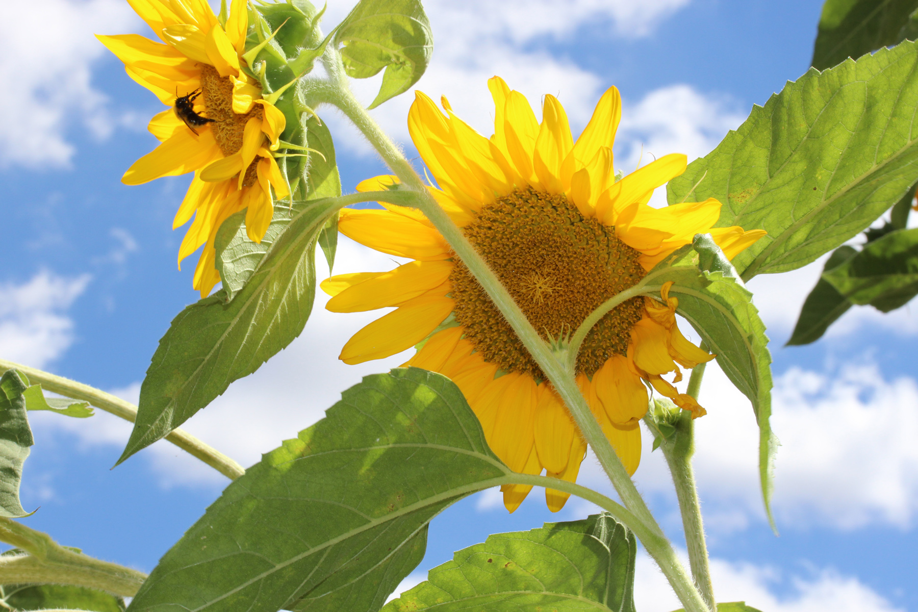 Avrei, probabilmente, scelto un girasole che non fosse attraversato dal gambo di un altro suo simile, in questo modo la scena resta un po' confusa...anche il taglio del girasole in alto con l'ospite non è il massimo.