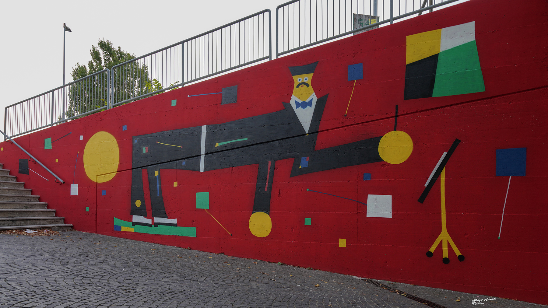 Il murale è bello, con un disegno originale e i colori vivaci, ma, per la verità, l’immagine mi sembra un po’ incompiuta… avrei visto bene un richiamo esterno o, in alternativa, una ripresa più consona al soggetto...