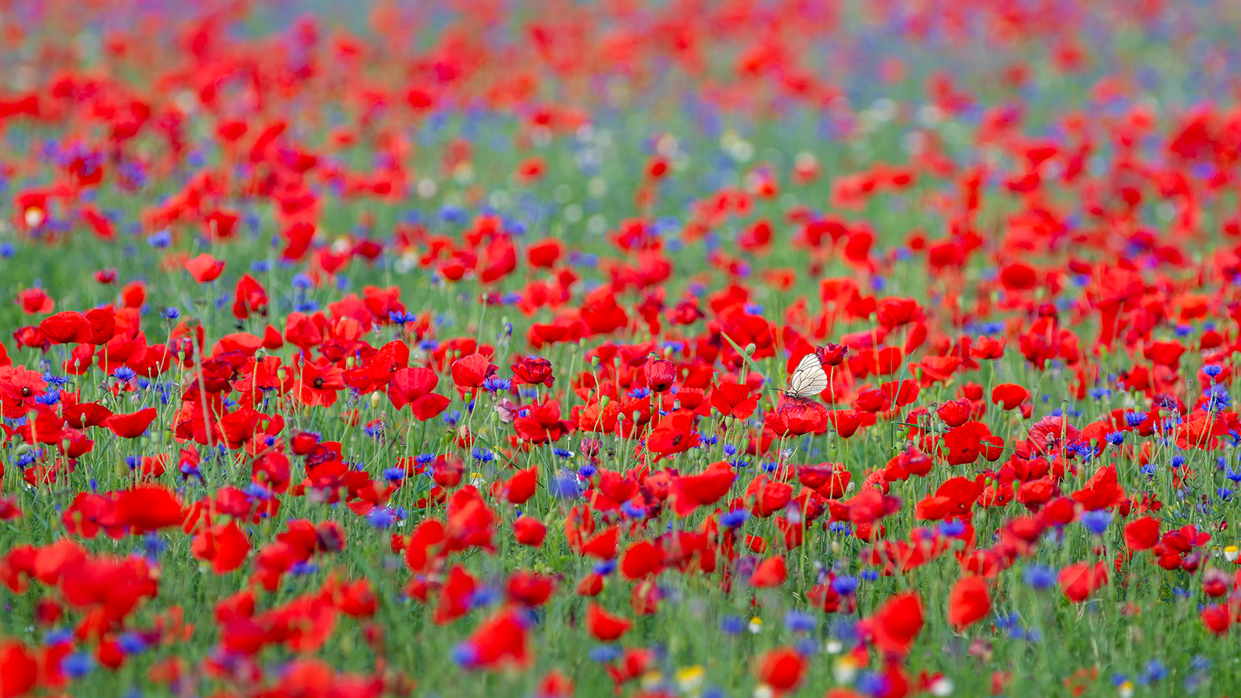Intelligente l'uso della pdc ridotta in questio contesto, bellissimo il tocco candido della farfalla in questo mare di rosso/violetto. Ben vista e composta, hai avuto buon occhio e prontezza .