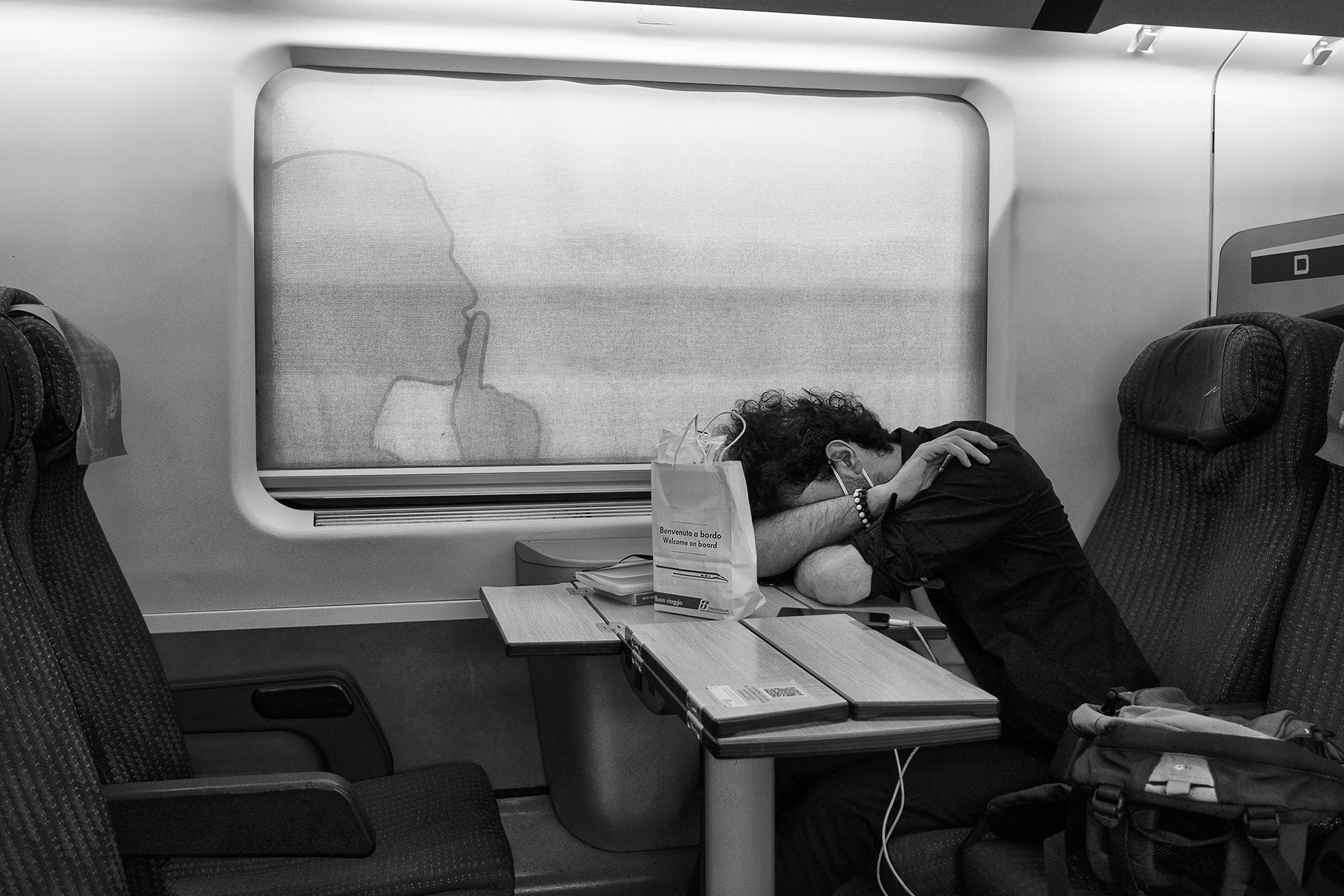 | Sempre giovane gli aspetta un lungo viaggio chissà per dove, stanco si concede riposo con il treno che lo culla. ottima ripresa |