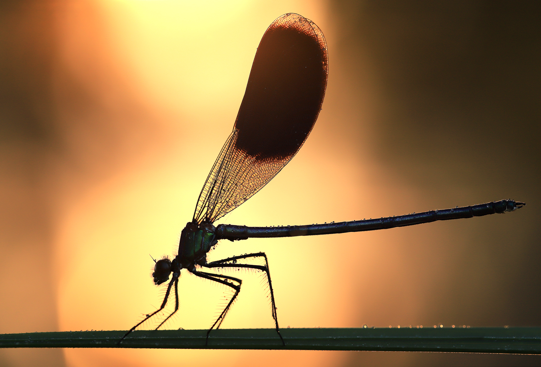 Perfetta la ripresa in silhouette allineata sul piano orizzontale del filo d'erba in tensione che la sostiene. bella lu luce calda che fa da campana visiva all'immagine. ottimo scatto. Ciao, Tiziano  |