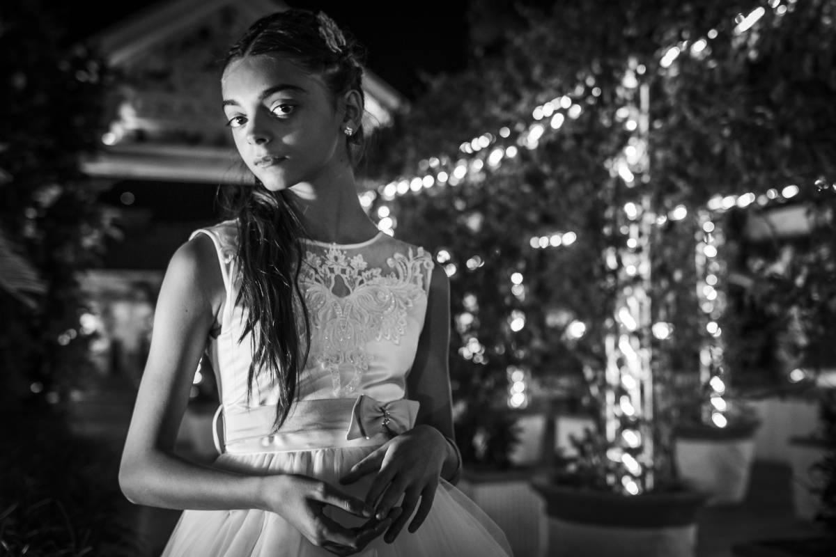 Mi piace molto la composizione, lo sfocato "a pallini" delle luci dietro che hai sfruttato molto bene in diagonale come molto bene hai sfruttato la luce laterale sul volto della sposa grazie alla soluzione di farla voltare verso quella direzione pur con lo sguardo in camera.