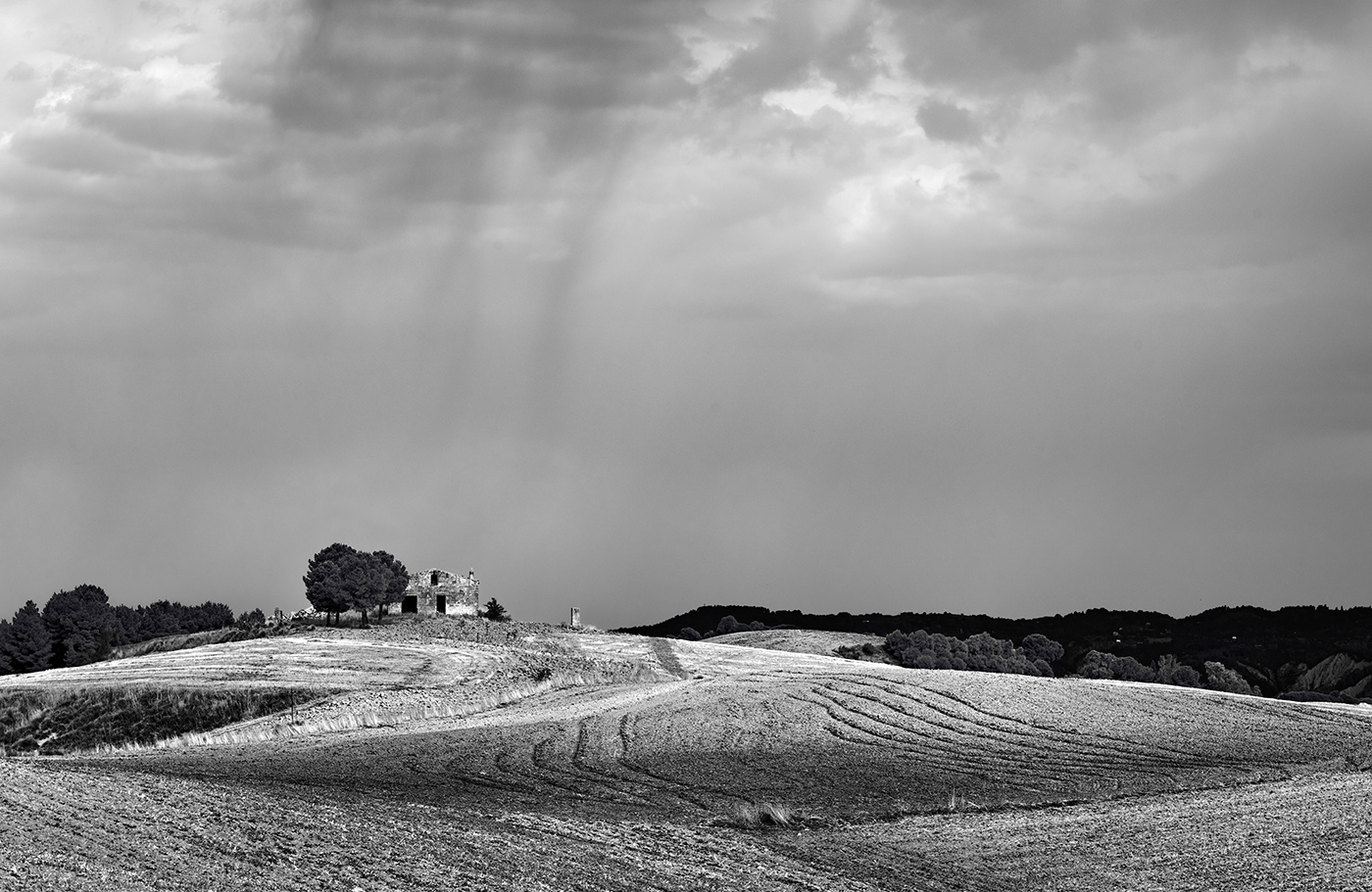 Terra rasposa, casolare diruto, un paesaggio aspro e bello.
