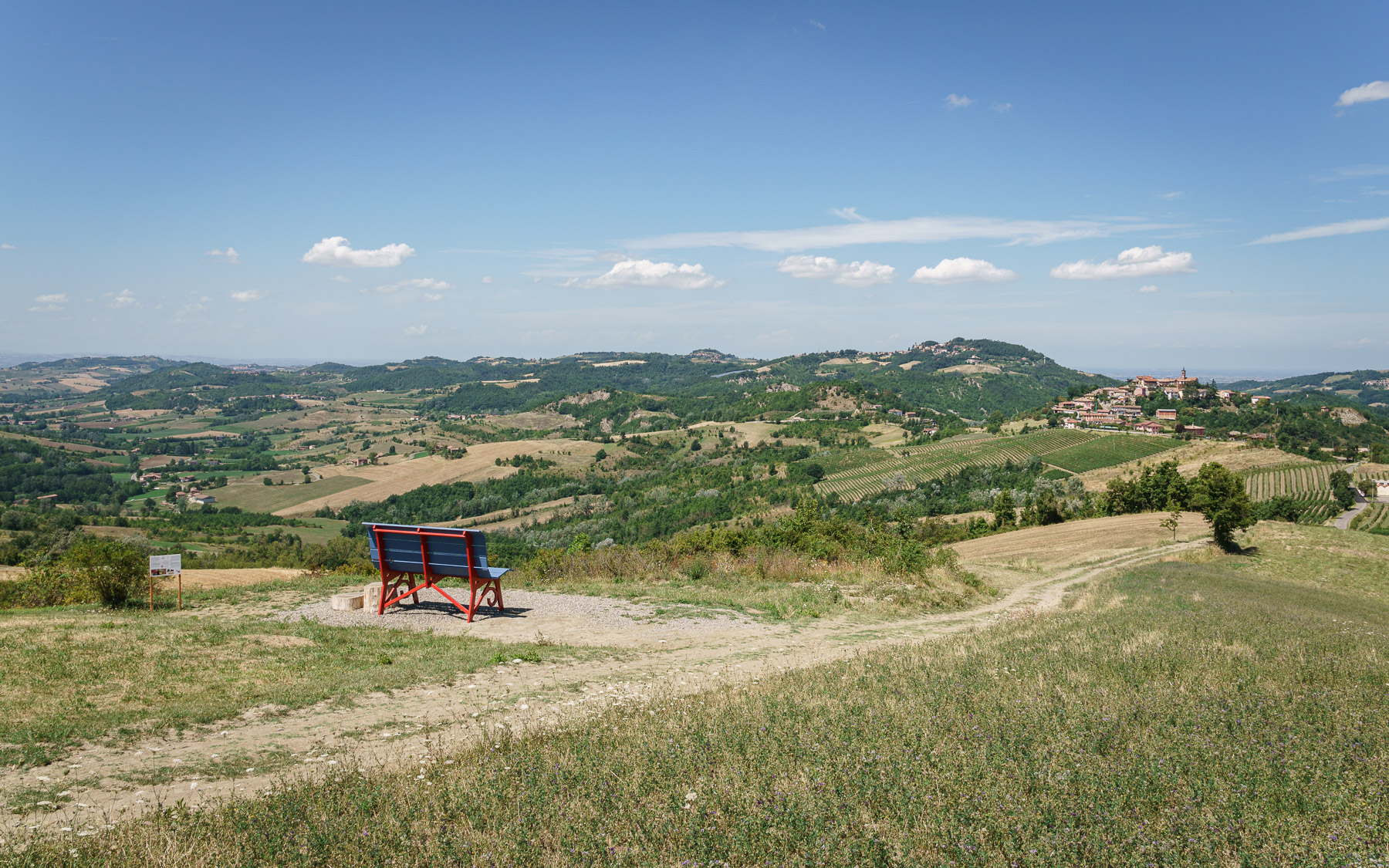 A questo aggiungi una vista ampia e ariosa e mozzafiato con un soggetto tanto semplice quanto efficace e colorato (l'ho riconosciuta la panchina gigante).