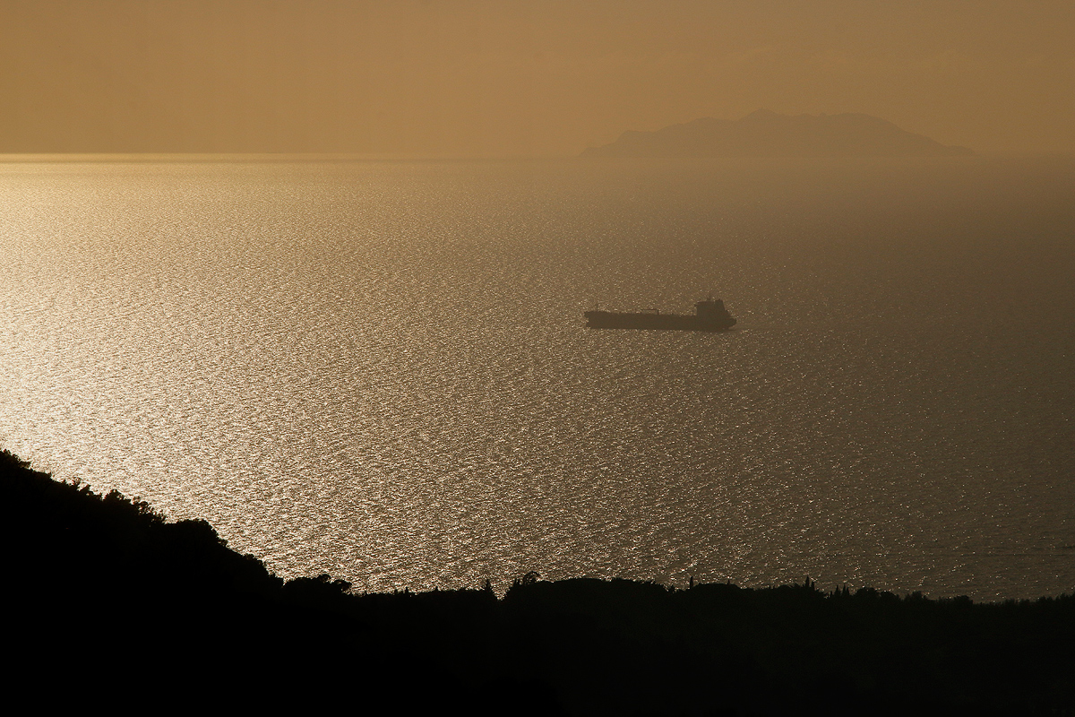 Il profilo dell'isola e della grande nave, caratterizzano l'immagine.