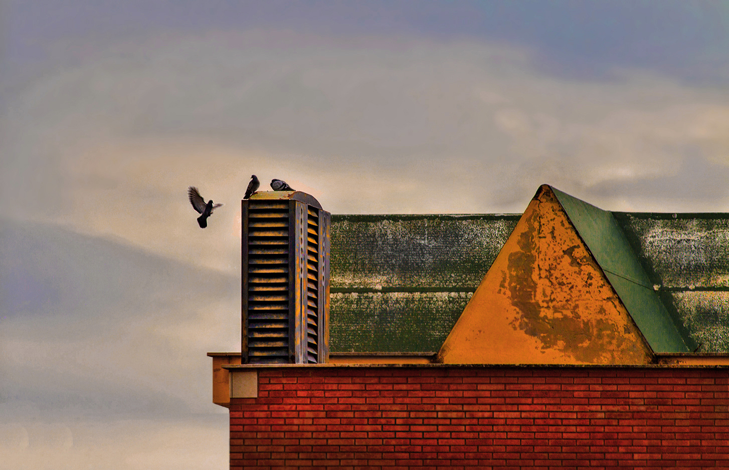 Mi piace questa foto sia per la composizione scelta, sia per la resa del colore che la fa assomigliare a un buon disegno a pastello. Poi la presenza dei piccioni e l'apertura di ali di quello in atterraggio donano vitalità all'immagine. Buona. Ciao, Tiziano |