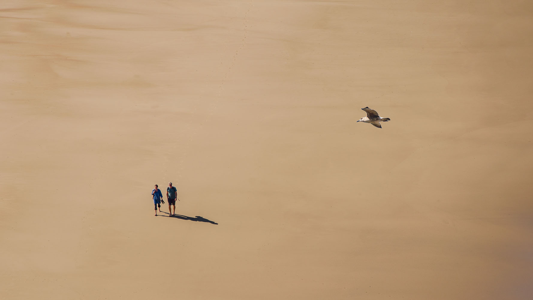 Essenziale e bellissima… Una composizione perfetta, minimalista ma ottimamente bilanciata tra persone e gabbiano. Mi piace davvero molto, complimenti!