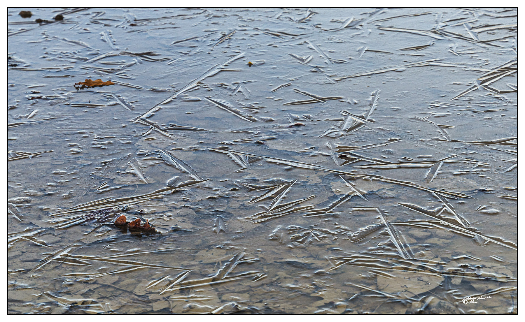 Che bella questa pozzanghera ghiacciata che ti ha regalato una texture vetrosa.