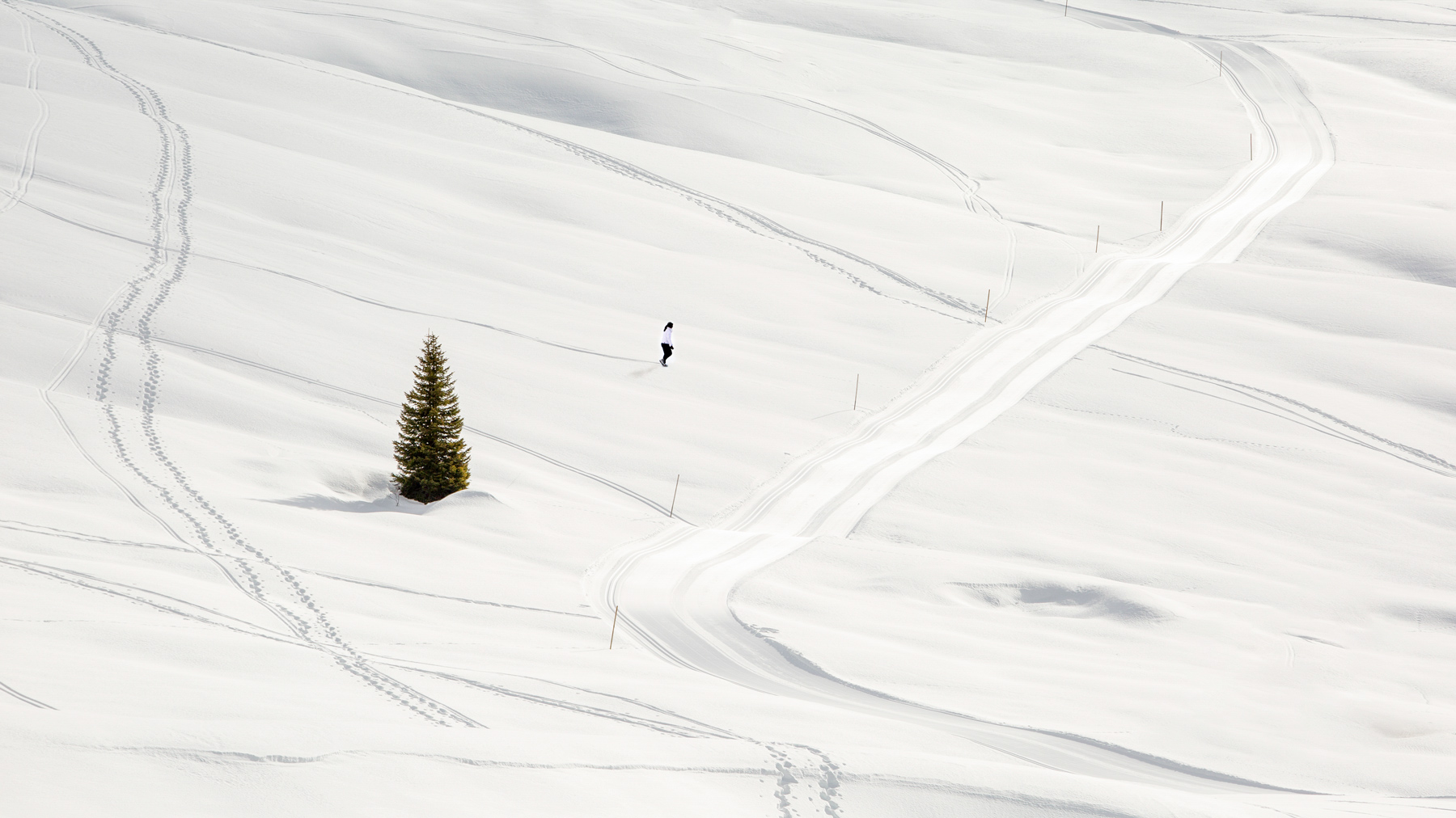 Anche a me piace moltissimo! Il PDR dall'alto aumenta l'effetto minimale della foto con la luce che rende la neve un manto delicato che ricopre il suolo. Le tracce sulla neve danno dinamicità allo scatto  _________________ Massimo Facco