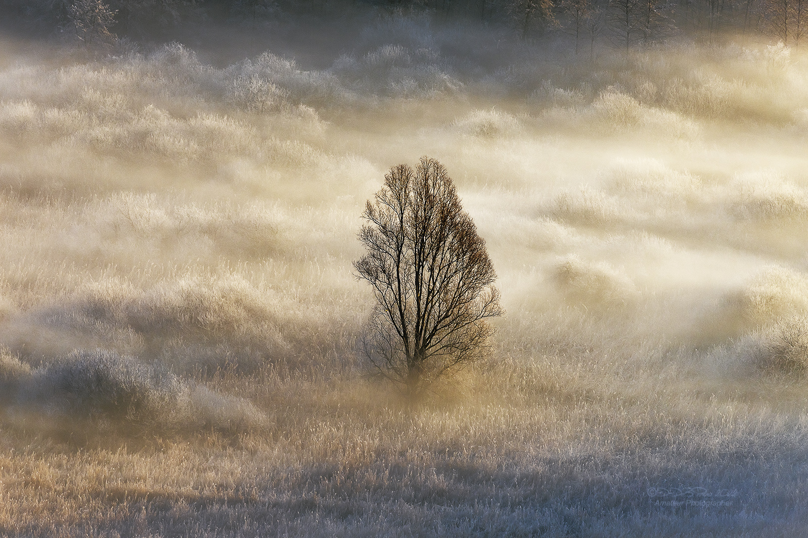 Un solitario immerso nella luce.. foschia e brina, rende piacevole immagine e composizione. Ciao