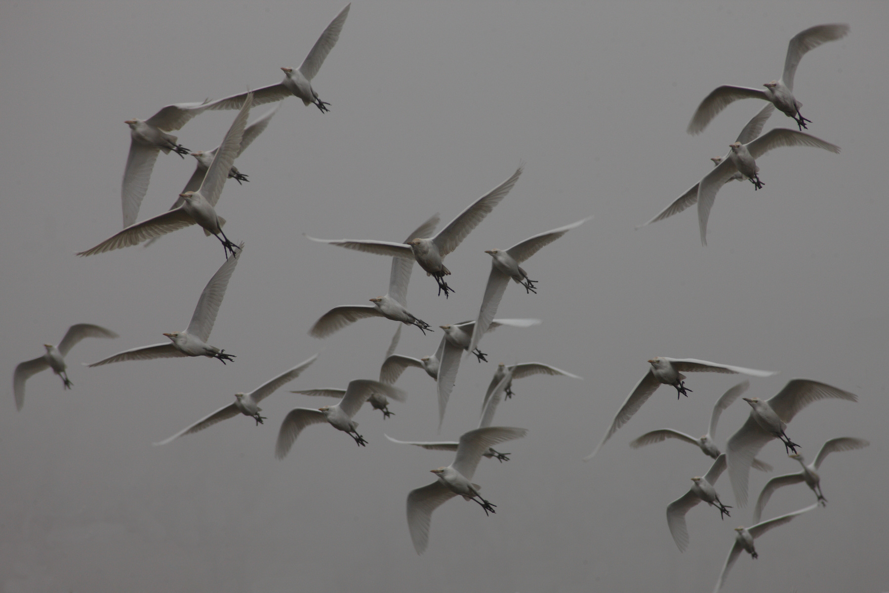 Beh, questo stormo di Guardabuoi lo hai ben inquadrato ma, la foto è sottoesposta, anche il cielo grigio non ti ha aiutato.