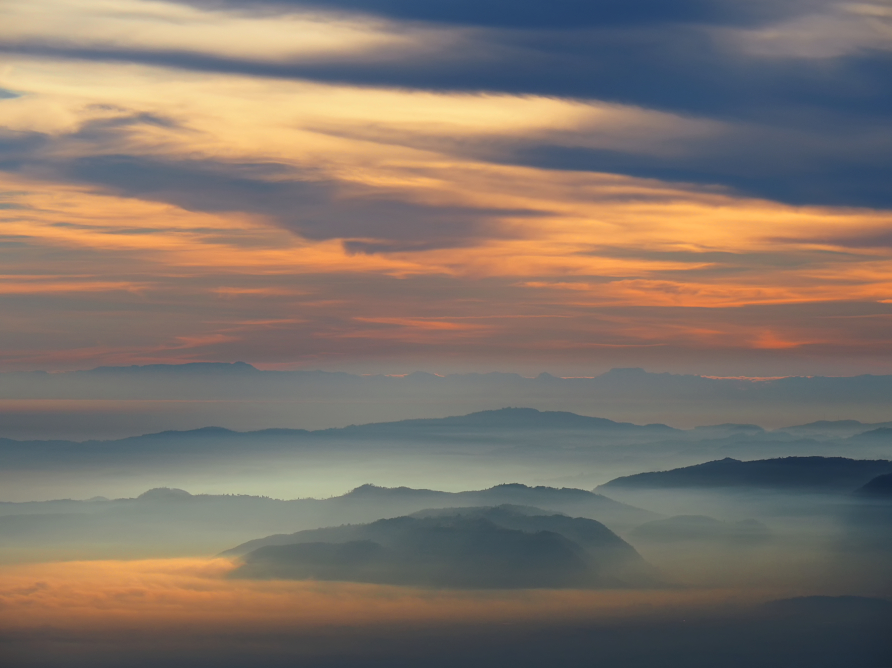 Vista serale dall'Altopiano di Asiago (VI) sulle digradanti colline prealpine con lo sfondo dell'Appennino tosco-emiliano. (a 190 km) Gennaio 2022 _________________ Fotocamere Olympus OMD e PEN, Panasonic G3. Software GIMP