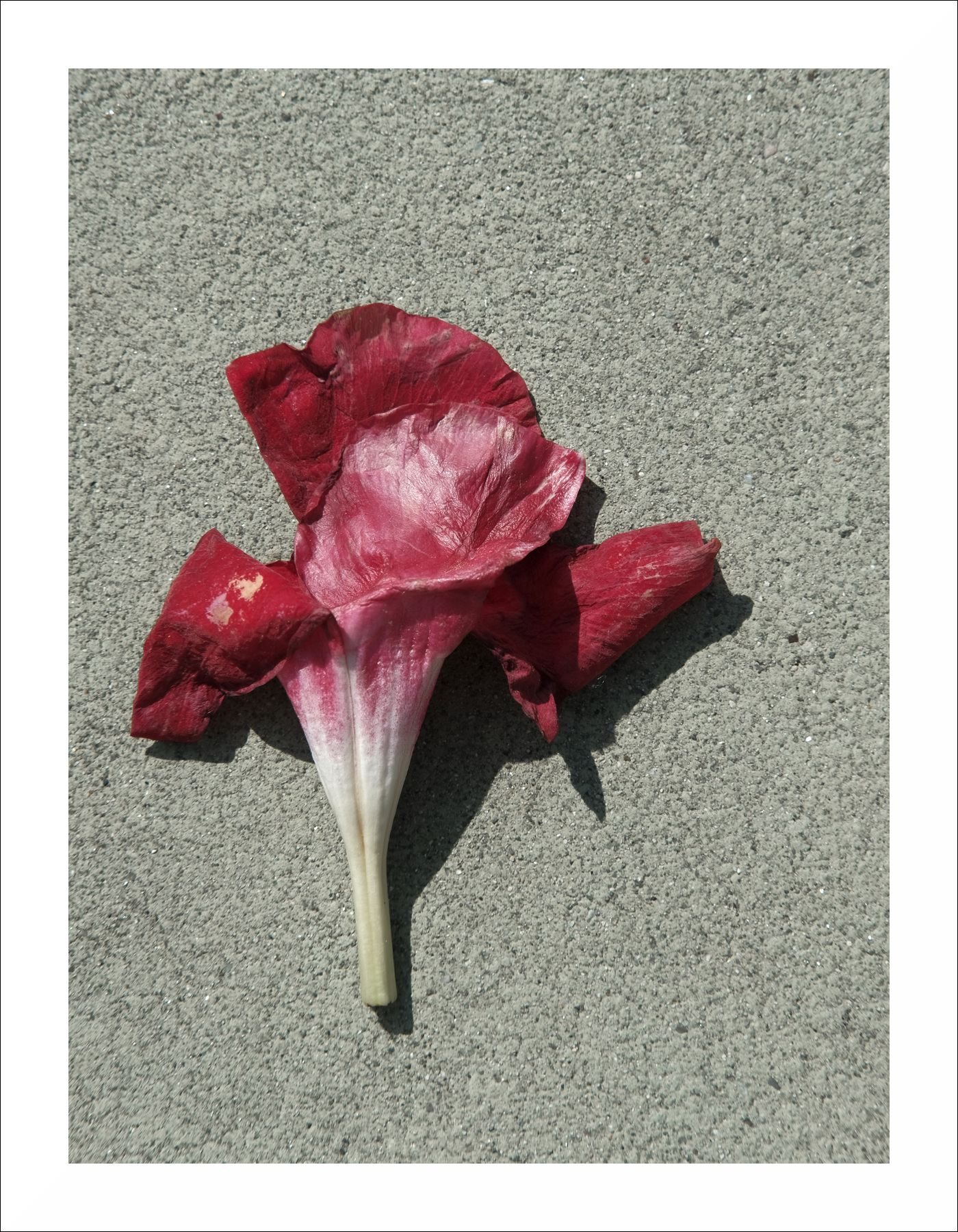 Un fiore di oleandro che forse il vento ha strappato alla pianta. Ora giace a terra, il suo destino sarà di appassire e ti seccare se non finire sotto a qualche cosa, una scarpa, un pneumatico. Ne hai colto la ormai fuggita vita è gli hai donata nuova bellezza.
