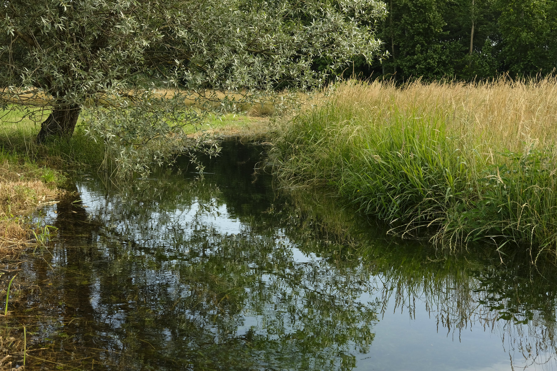Un immagine all'insegna della naturalezza di campagna, con le fronde che si riflettono in questa piccola bozza d'acqua, piacevole atmosfera e purezza.
