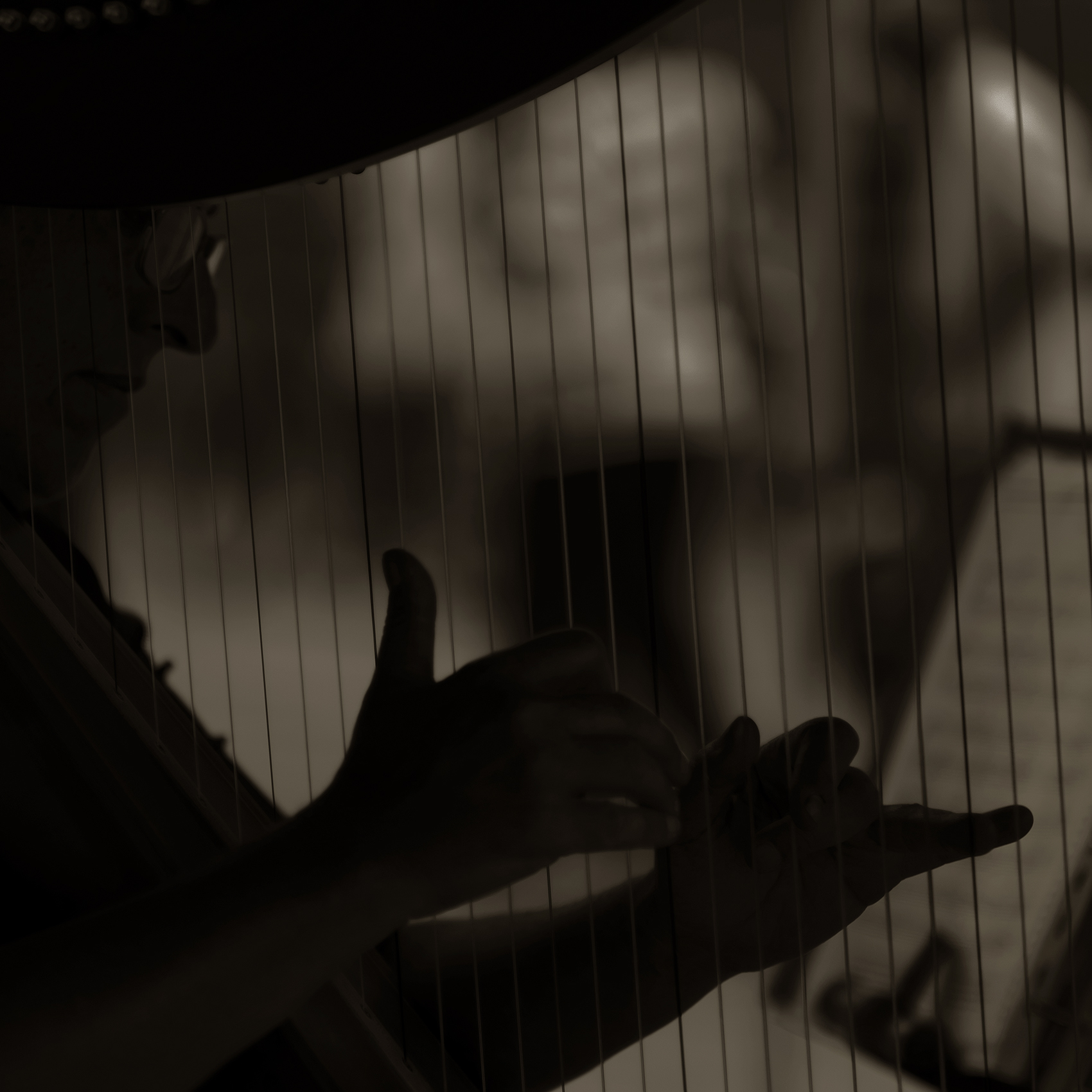 Una foto che nella sua oscura e densa espressione visiva sembra riuscire a intrappolare l'essenza di certe vibrazioni grevi che l'arpa su certe melodie può intessere.