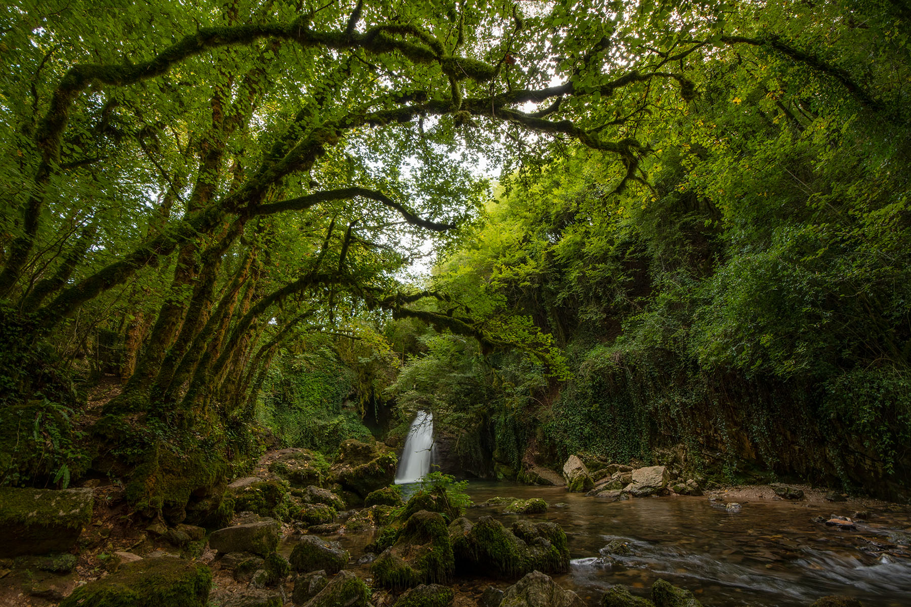 Il fulcro della composizione è la cascatella che, grazie al tempo lento, disegna una piccola area chiara, bilanciata in alto dal cielo altrettanto chiaro, in un frame con netta prevalenza di toni scuri. Da lì la lettura dell'immagine abbraccia tutto il fotogramma.