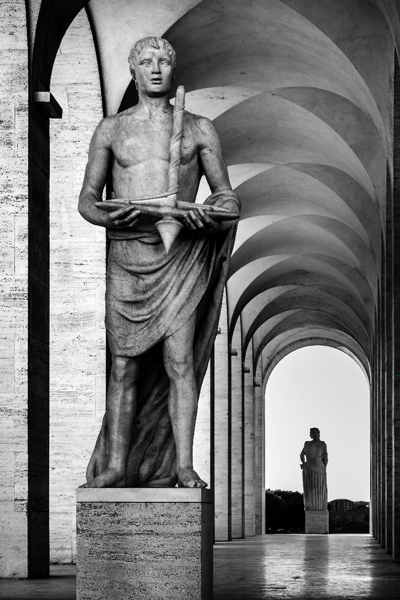 La statua in primo piano che richiama l'altra in diagonale sullo sfondo, la serie ritmica degli archi, una accurata e precisa inquadratura, l'alternarsi di luce e ombre, l'ottima luce, ne fanno uno scatto di grande pregio. Bravo Danilo _________________ Giuseppe |