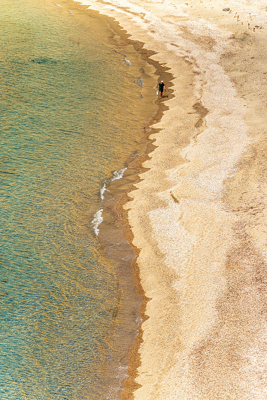 | Una foto che grazie al particolare punto di ripresa e la conformazione sabbiosa oltre che alla resa dei colori finisce per apparire come un elegante astratto paesaggistico dove l'unico riferimento è rappresentato dalla figura umana, piccola, piccola. Mi piace. Brava. Ciao, Tiziano |