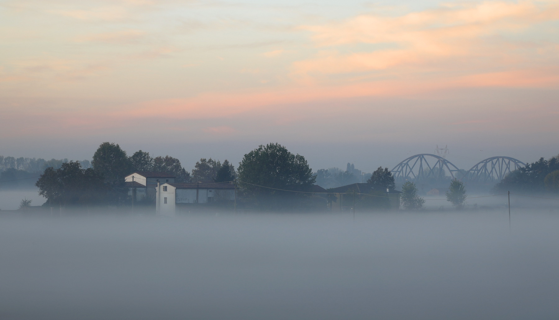 tutto ovattato e racchiuso nella foschia, un ottimo paesaggio, bravo.