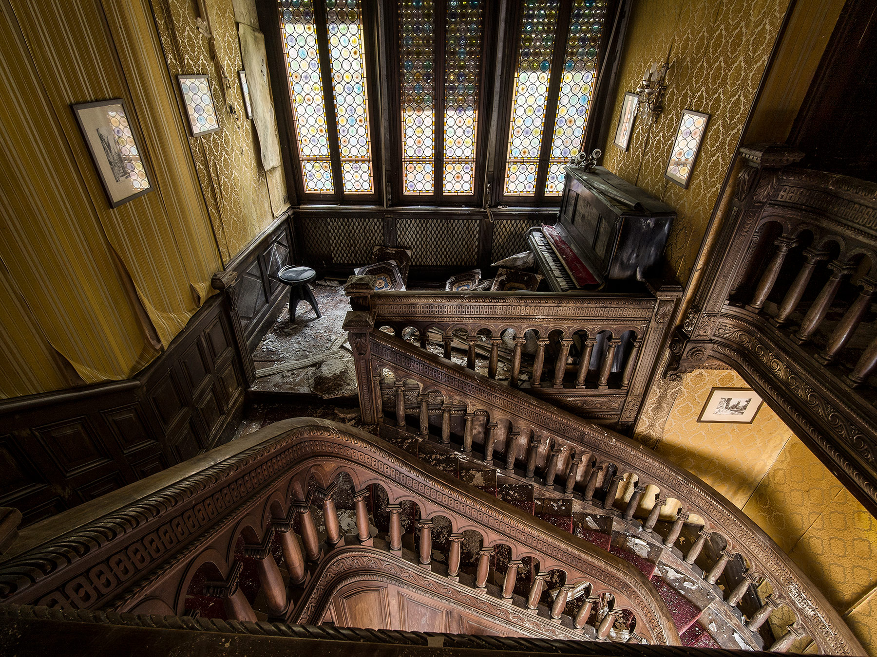 L'inquadratura lascia intendere la maestosità e la ricchezza del luogo prima dell'abbandono.
