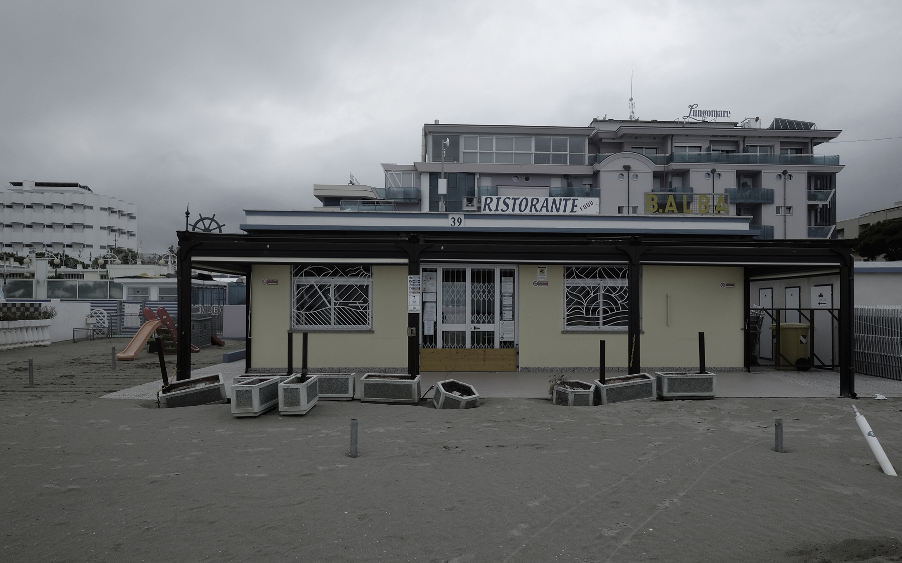 se penso all'estate luminosa , ed alla moltitudine di persone che affollano questi luoghi di piacere , questa foto che esprime la tristezza invernale i colori spenti ,qualche soggetto che passeggia ben coperto , mi vien da dire che lo scatto esprime bene