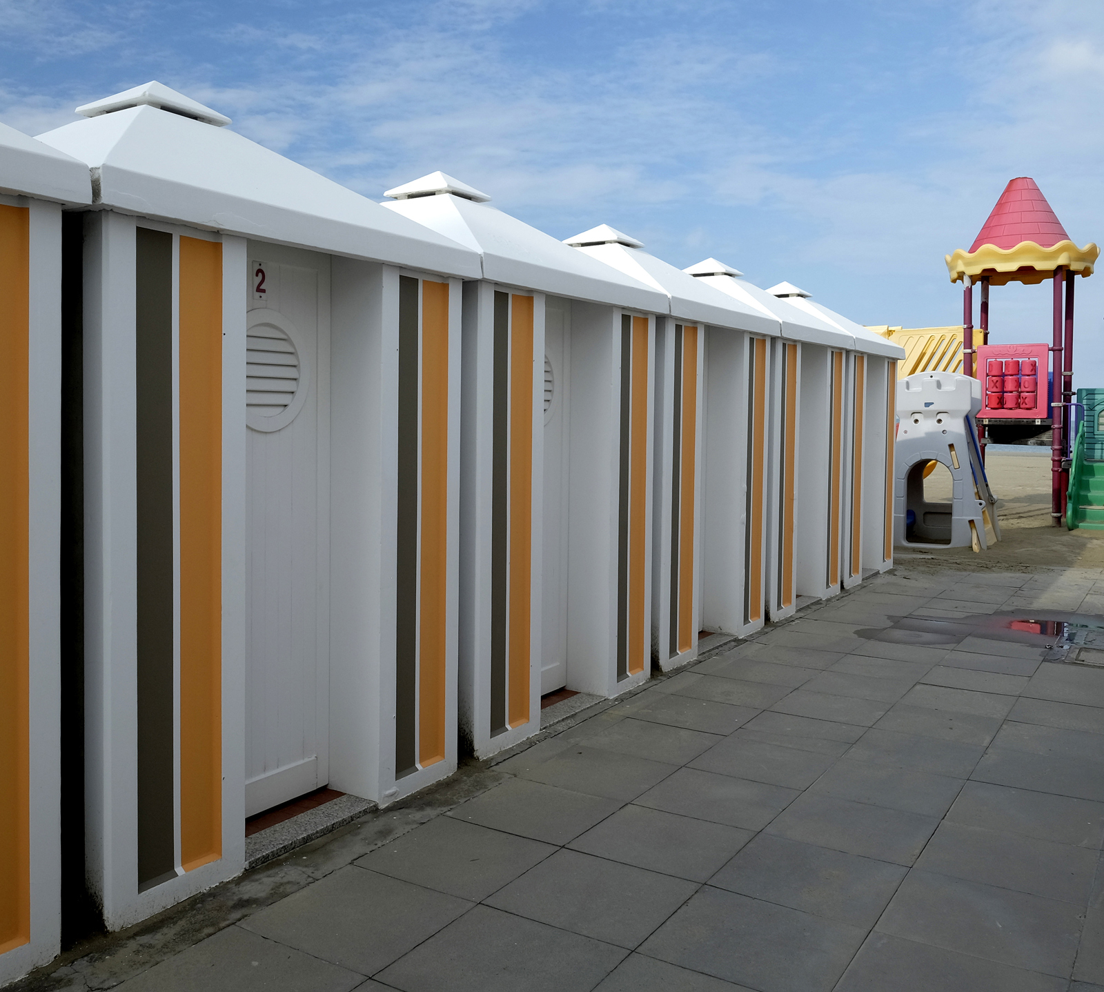 Formalmente molto buona, avrei però sacrificato una striscia di cabine a sinistra per includere tutto il gioco verde sul lato opposto.