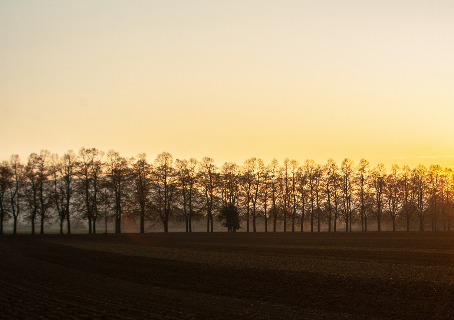 Il piccolo al centro degli altri alberi ordinatamente in fila.