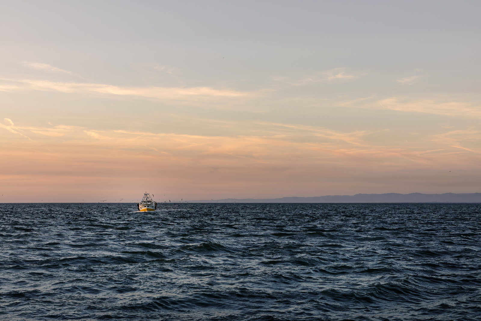 Un immagine minimale, che appaga lo sguardo grazie ad una composizione precisa e a dei toni dolci e piacevoli. Il peschereccio porta un tocco di vita su questa immensa distesa increspata, con il suo seguito di volatili e quello spicchio di terra da un punto di riferimento ulteriore allo sguardo. I toni del cielo completano il tutto senza rubare la scena.La piacevolezza della semplicità. Ciao