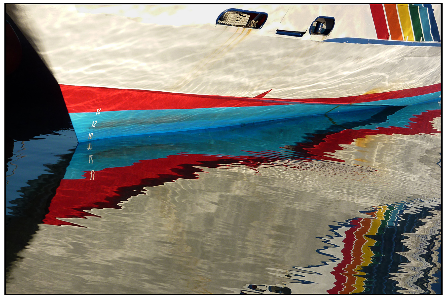 | Un bel riflesso con colori molto vividi e sgargianti. L'inquadratura ben studiata raggiunge quasi una forma visiva astratta seppur rimanendo riferita allo scafo di una barca. Mi piace. Ciao, Tiziano |