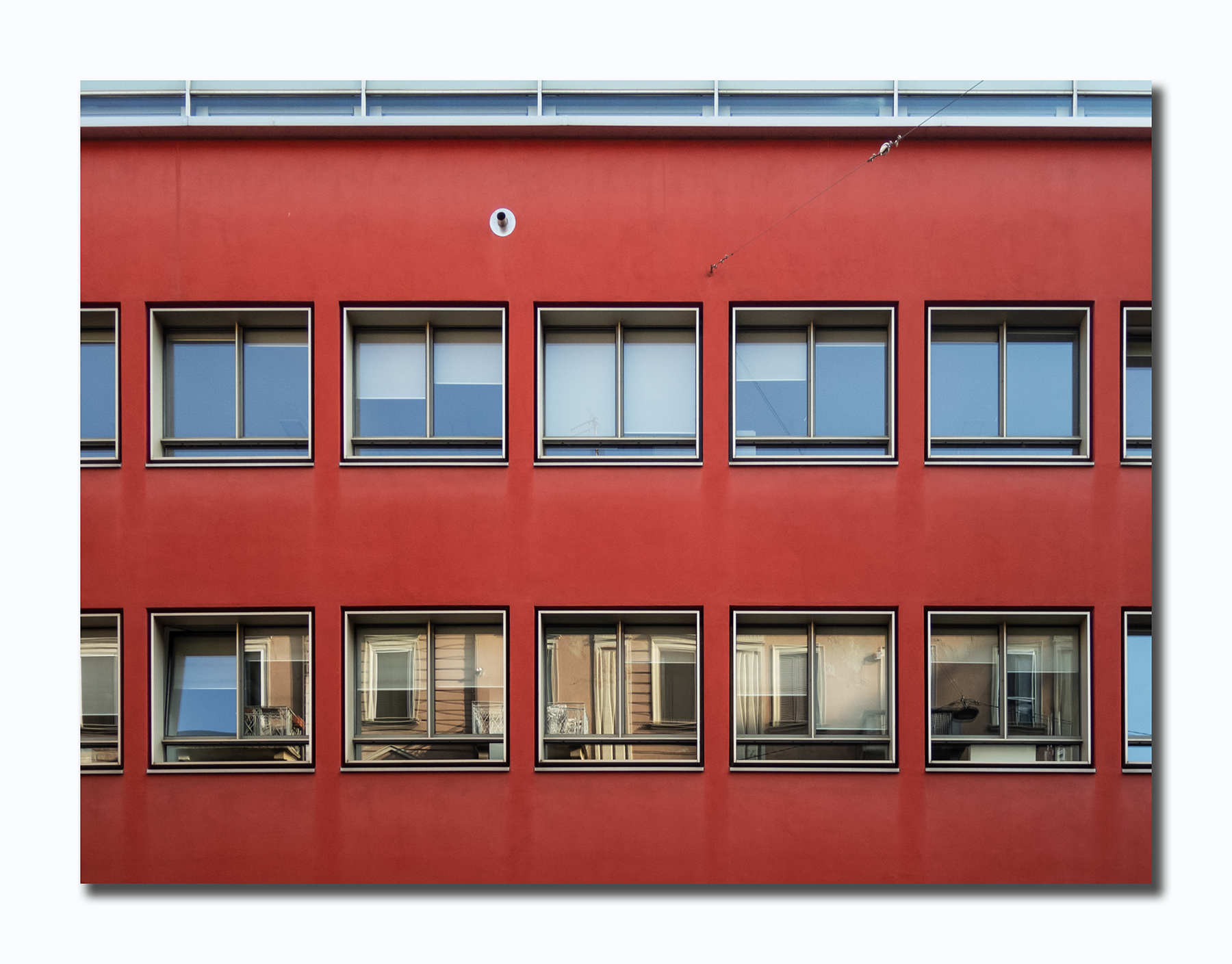 Me lo ricordo… un edificio senza pretese da te trasformato in un’interessante immagine, geometricamente precisa e cromaticamente accattivante, con riflessi nitidi e luminosi Originale la scelta dei tagli laterali e superiore