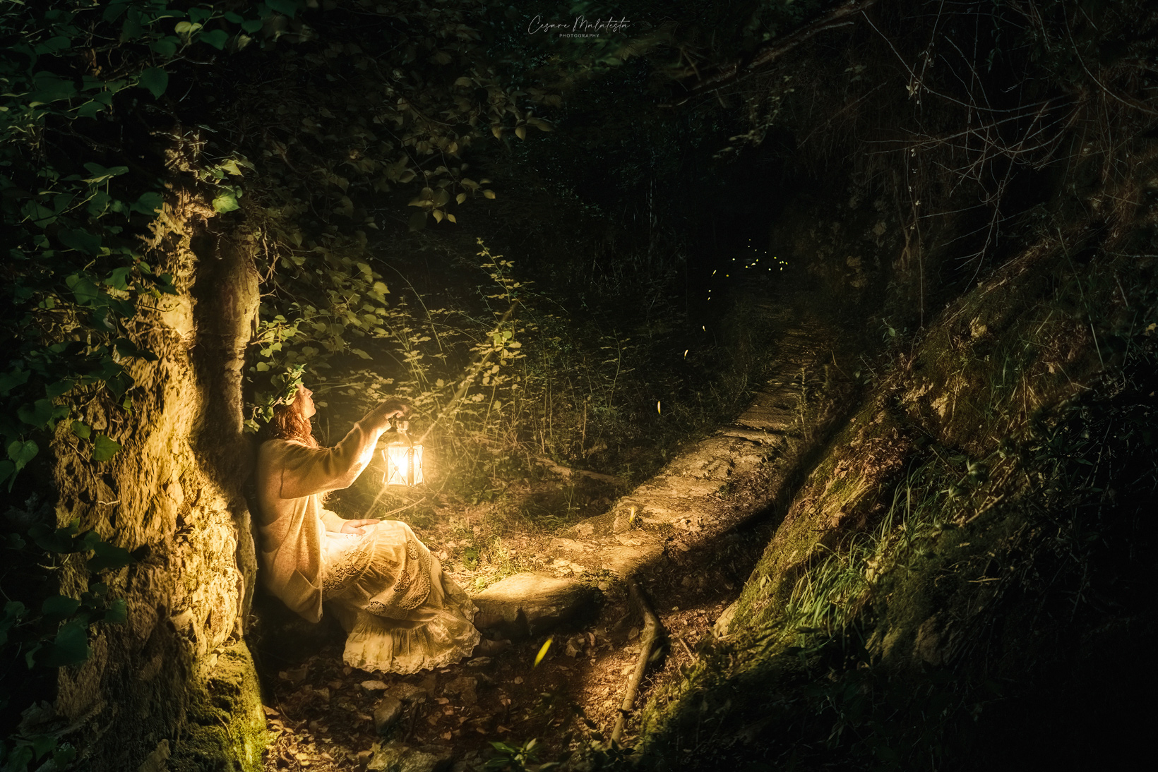 È il fotogramma di una fiaba, colorato di sogno e magia. Sono tanti gli elementi che regalano l'emozione di questo viaggio di fantasia, e sicuramente hai lavorato in maniera davvero efficace per restituire a pieno questa atmosfera. La luce è gestita in maniera suggestiva, cuore caldo dell'immagine, ma anche via coraggiosa per affrontare la via misteriosa del bosco, in forma di magiche gocce .Gli indumenti della ragazza poi son studiati ad hoc, così che soggetto e ambientazione parlano con un' unica voce. Però, tra ritratto e paesaggio io in realtà credo che la sezione più adatta sia studio, la sposto Smile .