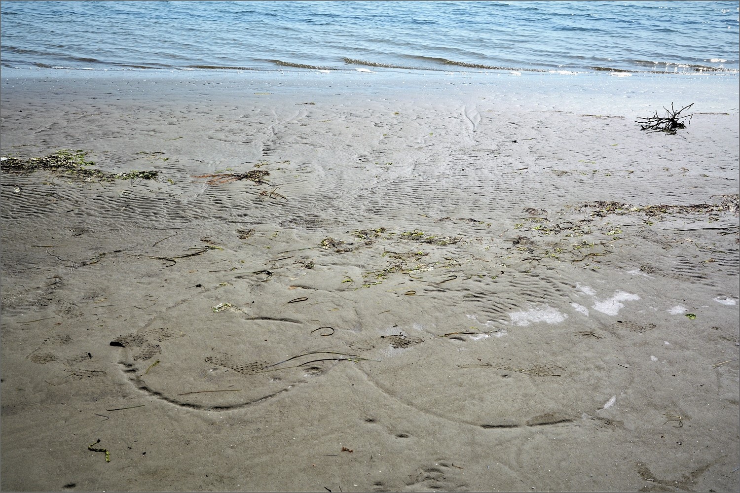 Un cuore filiforme che man mano si scolora limato dal ritorno delle onde e dal passaggio indifferente.