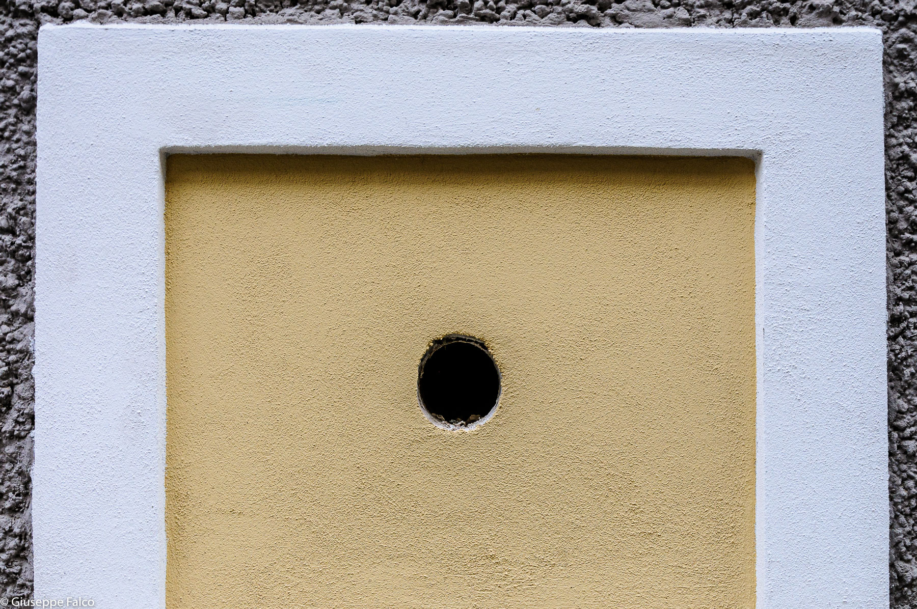 Uno scatto pulito, geometrico, con le ombre del buco e quella sotto il bordo del riquadro a dare tridimensionalità.