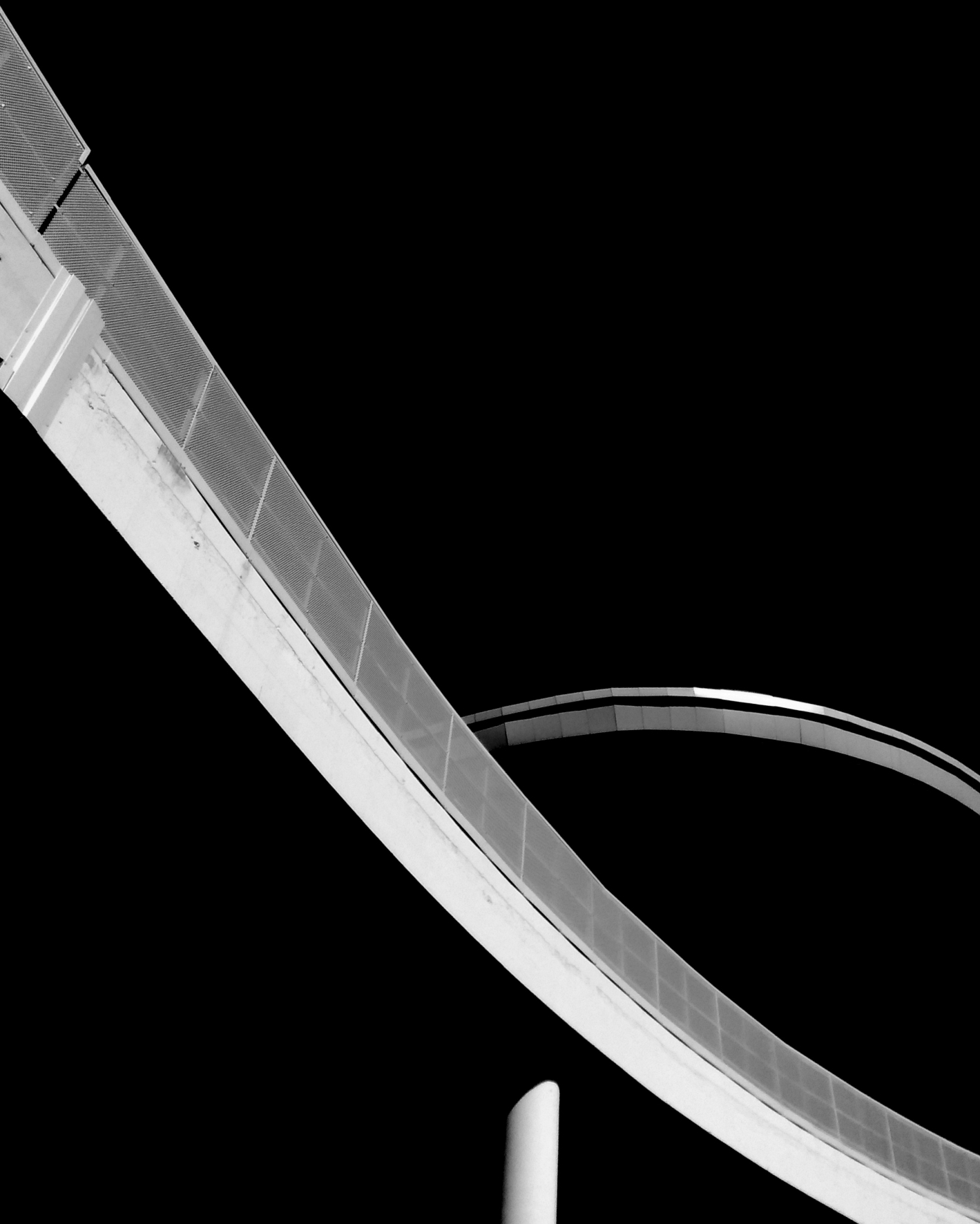 | Un particolare architettonico che ridotto dalle ampie zone oscurate del fotogramma appare come una rappresentazione calligrafa di un segno. Sono un po' incerto sull'opportunità o meno del sostegno cilindrico che spezza un po' l'armonia delle curve. Mi piace. Ciao, Tiziano |