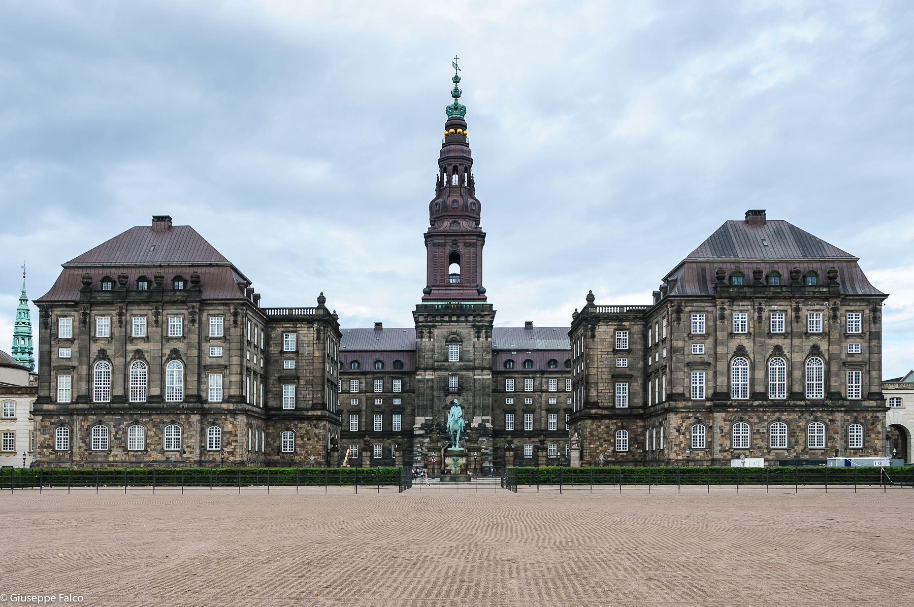 L'edificio è il Palazzo di Christiansborg nel quale trovano sede il Parlamento, l'ufficio del Primo Ministro (quindi di fatto il Governo) e la Corte Suprema (potere giudiziario) oltre alle sale di rappresentanza della famiglia reale.