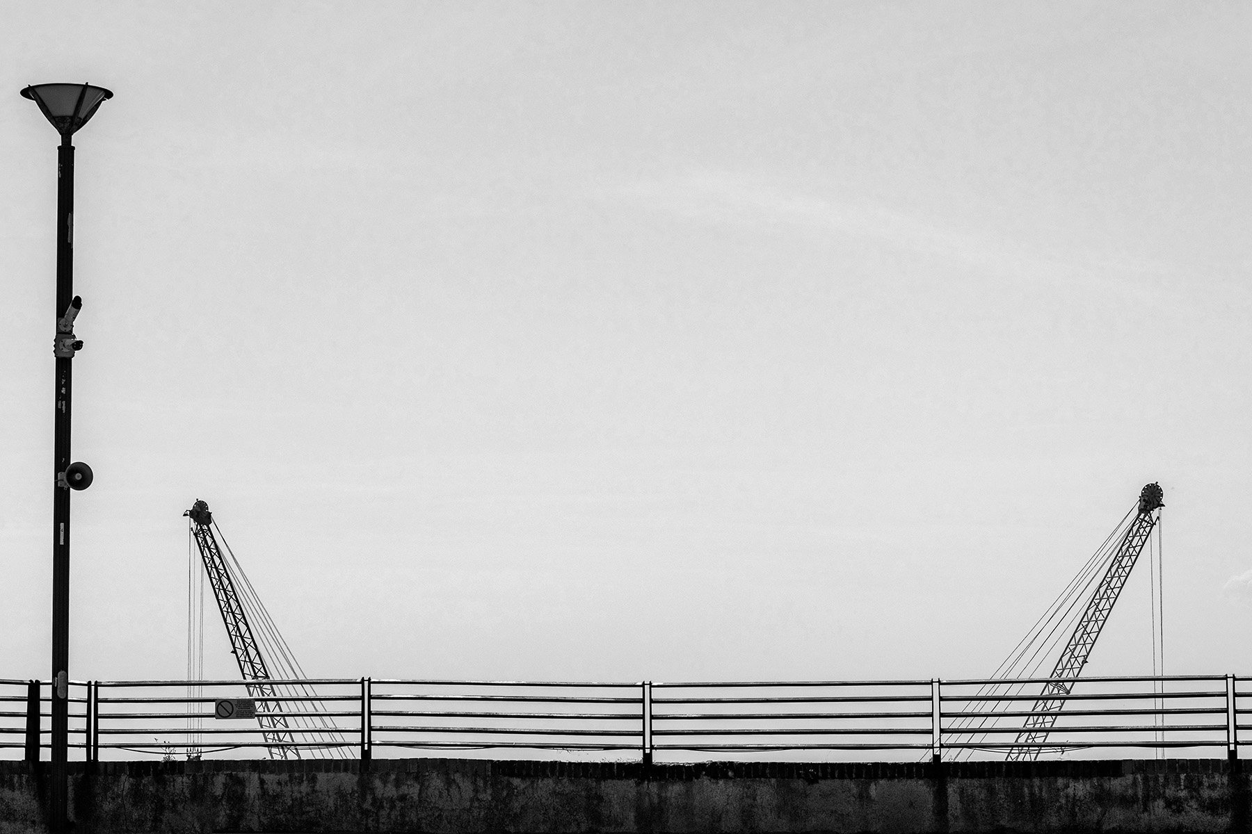 Una gradevole composizione dall’impronta grafica… Forse troppo lo spazio vuoto del cielo, la cui resa è migliorabile (un eccesso di maschera di contrasto? Si nota anche un filino bianco intorno al palo di sinistra). Buona comunque l’idea