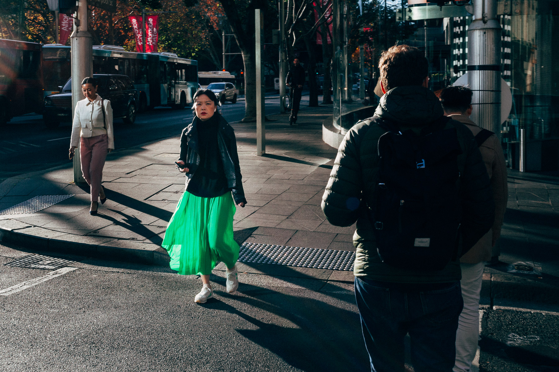 Ottimo il momento colto con quel verde e le sue trasparenze che attira l'occhio.Una street colorata e dinamica,molto classica,bella gestione della luce. Ciao,Sergio.