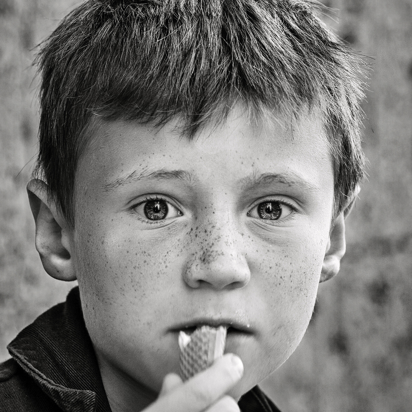Occhi così belli e pieni di luce che bucano letteralmente lo schermo. Efficace e corposo il b&n, regala tridimensionalità al volto del bimbo. La mano tagliata un po' disturba, anche perché atta a compiere un gesto significativo ai fini della narrazione. Ovviamente il risultato non è assolutamente pregiudicato a mio avviso _________________ Riccardo Bruno |