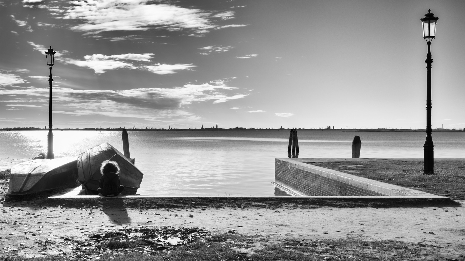 Ciao Massimo. Sulle nuvole le alte luci vanno ancora abbastanza bene. Il riflesso sull'acqua invece è in gran parte perso (forse qualcosa in più si potrebbe recuperare dal RAW) In realtà però io qui ci vedo due foto piuttosto ben disitinte. Una in verticale con barca, persona seduta e meravigliosa capigliatura in controluce. L'altra, in orizzontale nella parte destra, con un bel taglio in basso della banchina. In questa inquadratura il soggetto seduto gareggia con il lampione solitario a destra ed a mio avviso rende il tutto un poco dispersivo. Ti allego un esempio esemplificativo dove, per quanto possibile ho cercato un piccolo recupero.