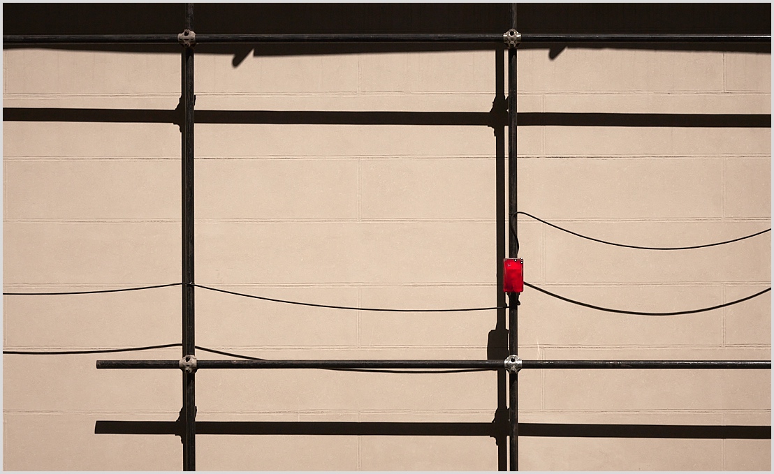 Le ondulazioni del cavo apportano armonia allo scatto, mentre la lampada rossa collocata sulla linea dei terzi vivacizza l'immagine, colpisce l'occhio .