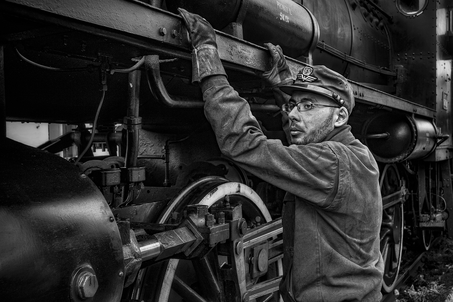 Eccellente, un ritratto ambientato ben composto e con una splendida conversione BN. Ricordo con nostalgia i tempi delle vaporiere, grazie per averci (ed averti) fatto questo regalo