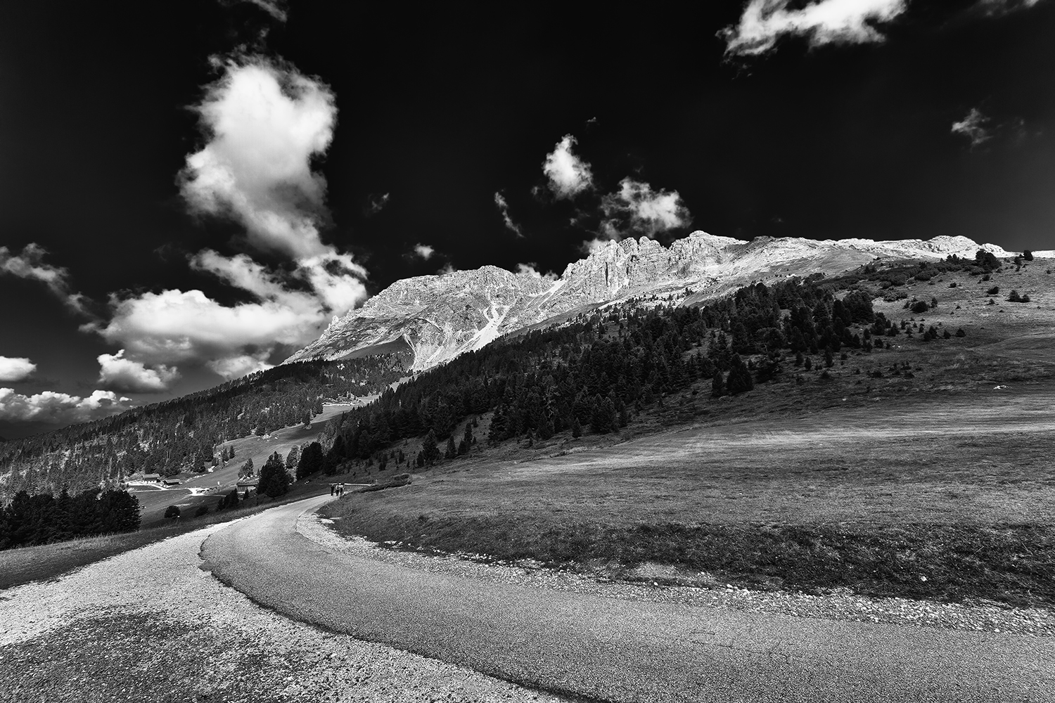 Bianco e nero ad alto contrasto. Sulle foto di panorami montani ben si addice.