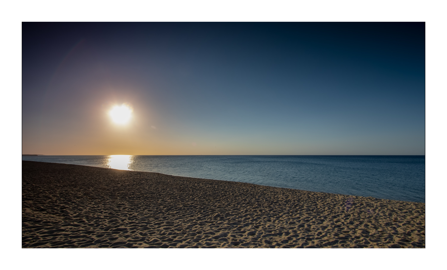 Le linee di composizione sono nette e pulite, la trama creata dalle tre fasce orizzontali è interessante, ma come già rilevato manca un soggetto attrattivo: il sole da solo è poco incisivo.