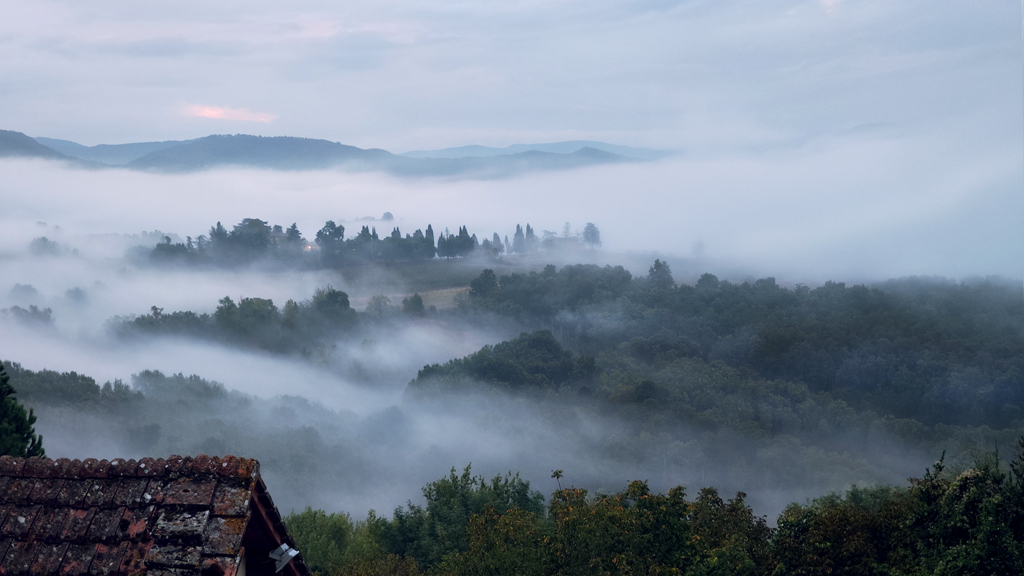 Il panorama è davvero suggestivo, la nebbia crea il classico effetto vedo non vedo sempre affascinante e regala alla scena un bell'alone di mistero.